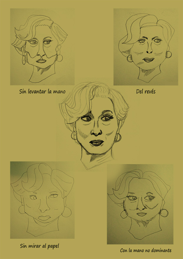 El otro día enlacé una entrada del blog de Domêstika, a cargo de Puño, en mi cuenta de LinkedIn con unos trucos para desbloquear la creatividad y despertar al cerebro. Acepté el reto y aquí está el resultado, con propina incluida: dibujar con la mano no dominante. Cualquiera de las modalidades es muy, muy difícil, pero os animo a intentarlo.